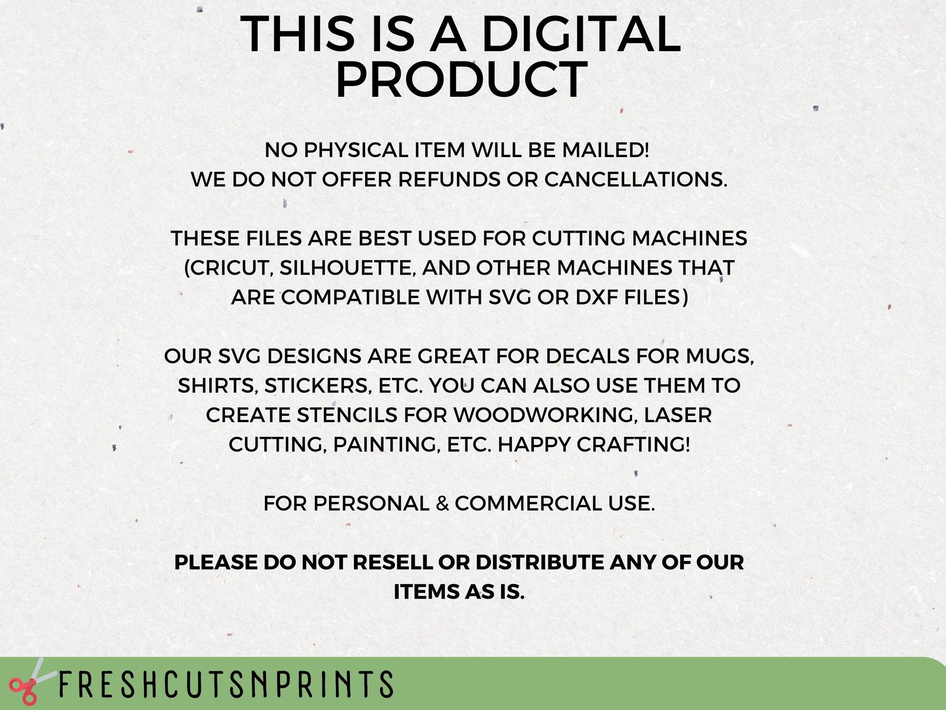 This item is an SVG BUNDLE that contains several different designs with a shared theme. Please note that this is a DIGITAL ITEM, please do not expect a physical item to be delivered to your address upon purchase. Any physical item or mockup featured in our listing images or advertisements relating to this item are for MARKETING PURPOSES ONLY.